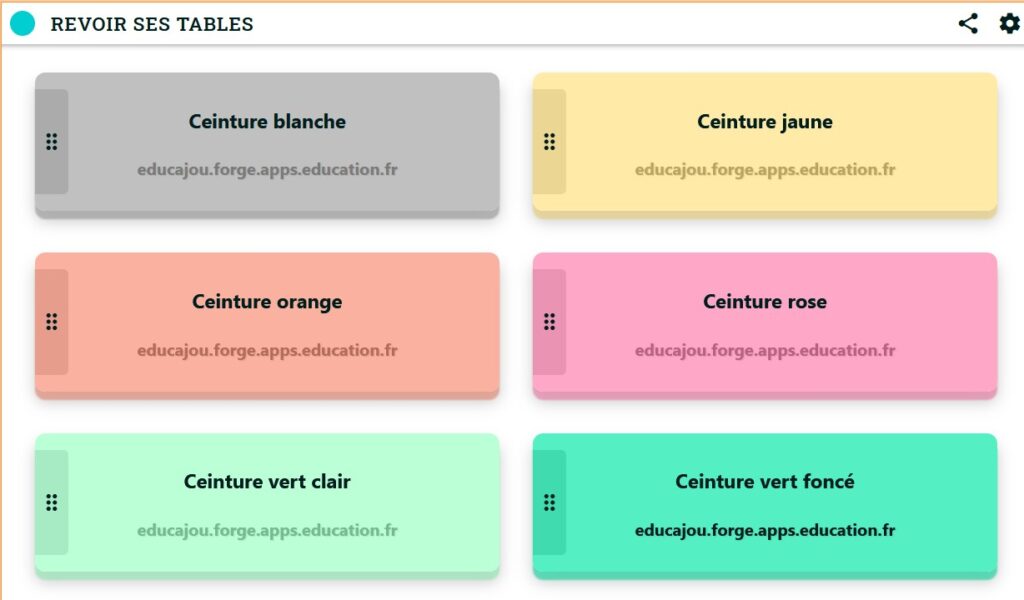 En 2026, j’ai aussi créé un digibunch (outil libre et gratuit La Digitale) dans lequel mes élèves trouvent un accès vers Popmath, outil libre et gratuit d’Educajou, configuré spécialement pour cahque couleur de ceinture. Vous pouvez le tester sur ce lien (clic). Vous pouvez aussi partager le lien sur votre ENT ou, comme moi, sur Le Petit Bureau (hyper pratique pour partager toutes sortes de liens à vos élèves)